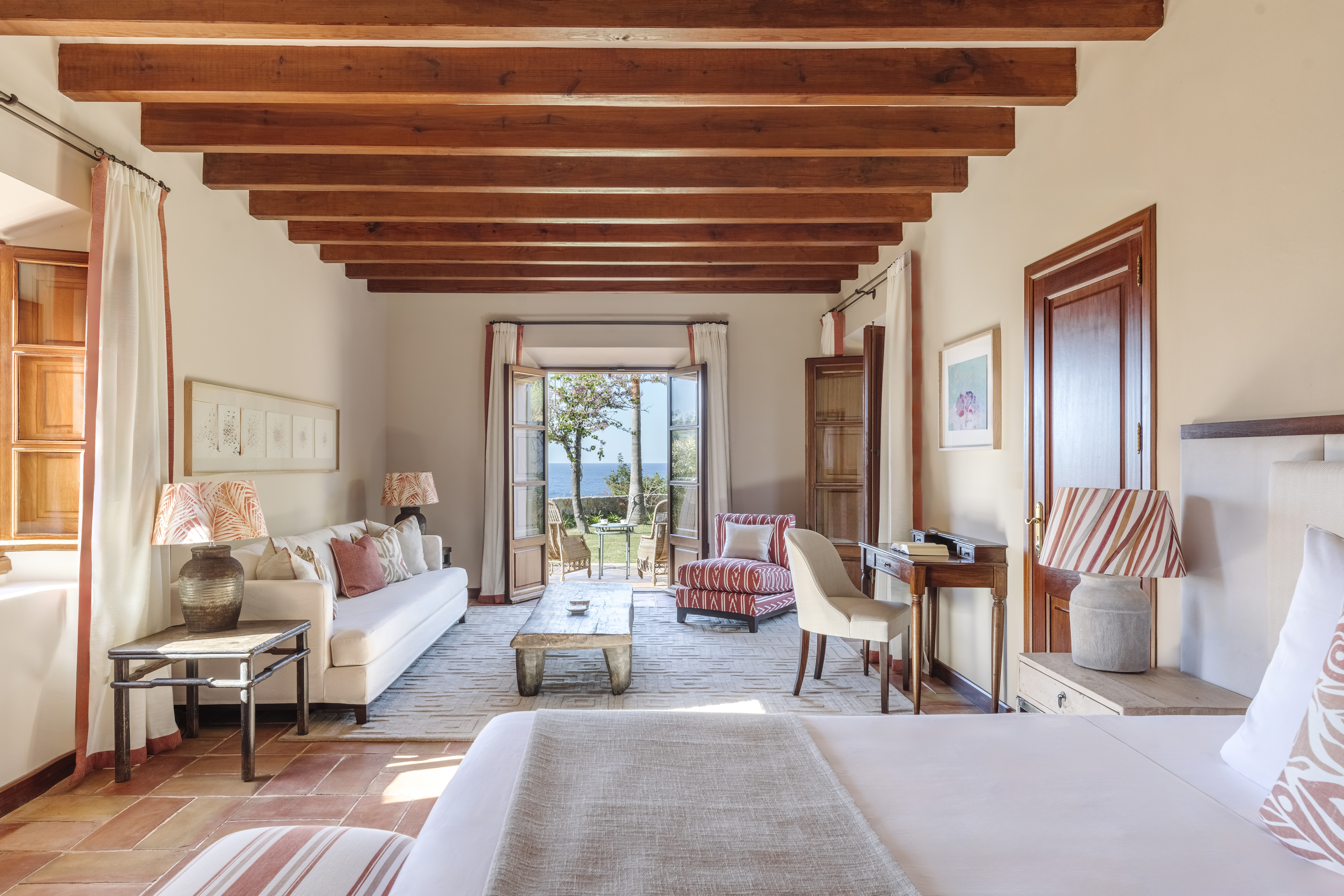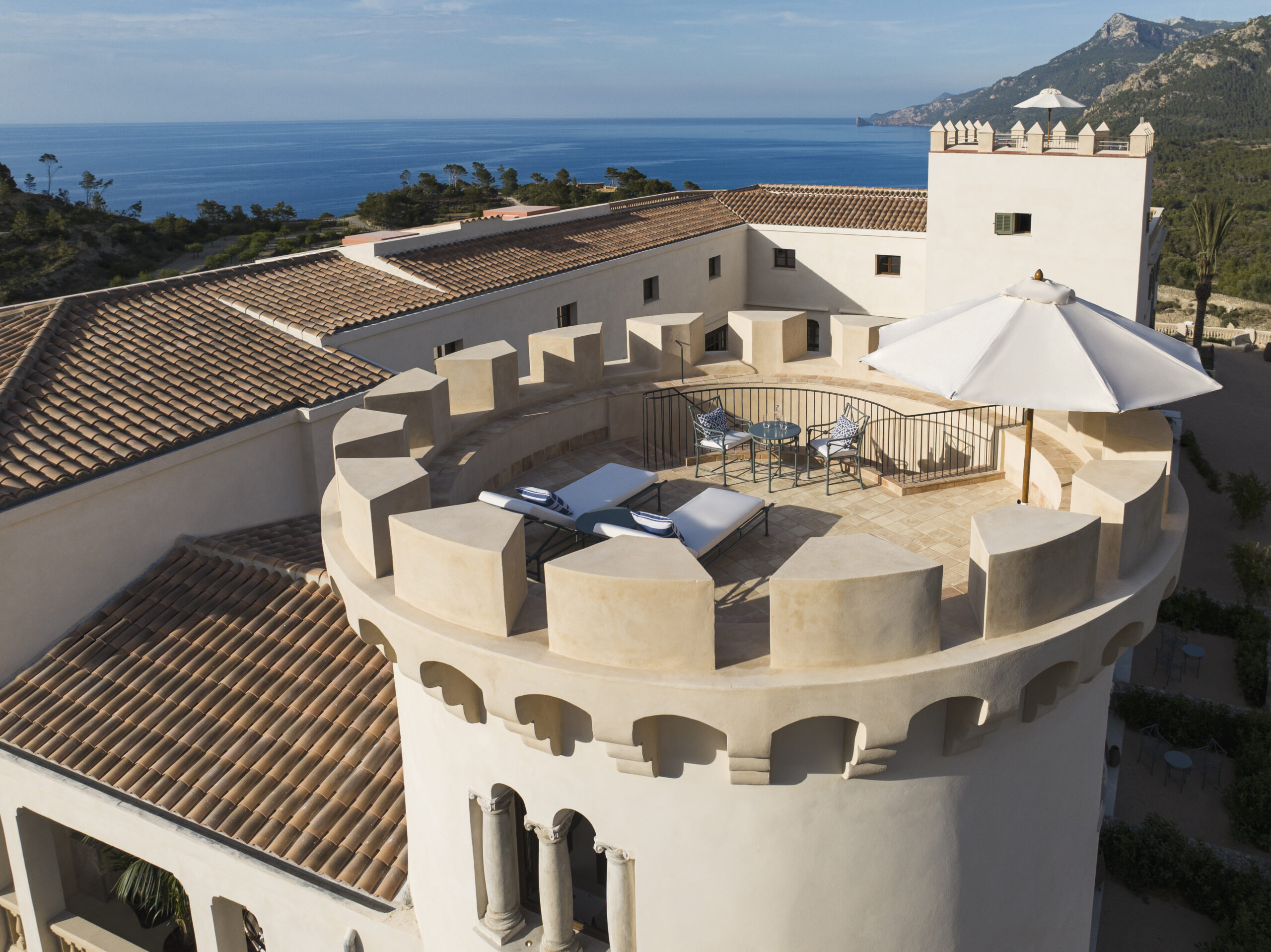 Son Bunyola is situated on Mallorca’s northwest coast, near the village of Banyalbufar in the UNESCO World Heritage Tramuntana region. A historic finca from the 16th century forms the heart of Sir Richard Branson’s estate and was transformed into a luxury hotel with 27 rooms in 2023. Surrounded by vineyards, olive groves, and citrus trees, guests enjoy exceptional views of the Mediterranean coast. The main finca is complemented by the historic Tafona with its ancient olive press, two excellent restaurants, a spa, and a heated 28-meter pool overlooking Mallorca’s famous Foradada. The estate also includes three luxury villas with private pools.