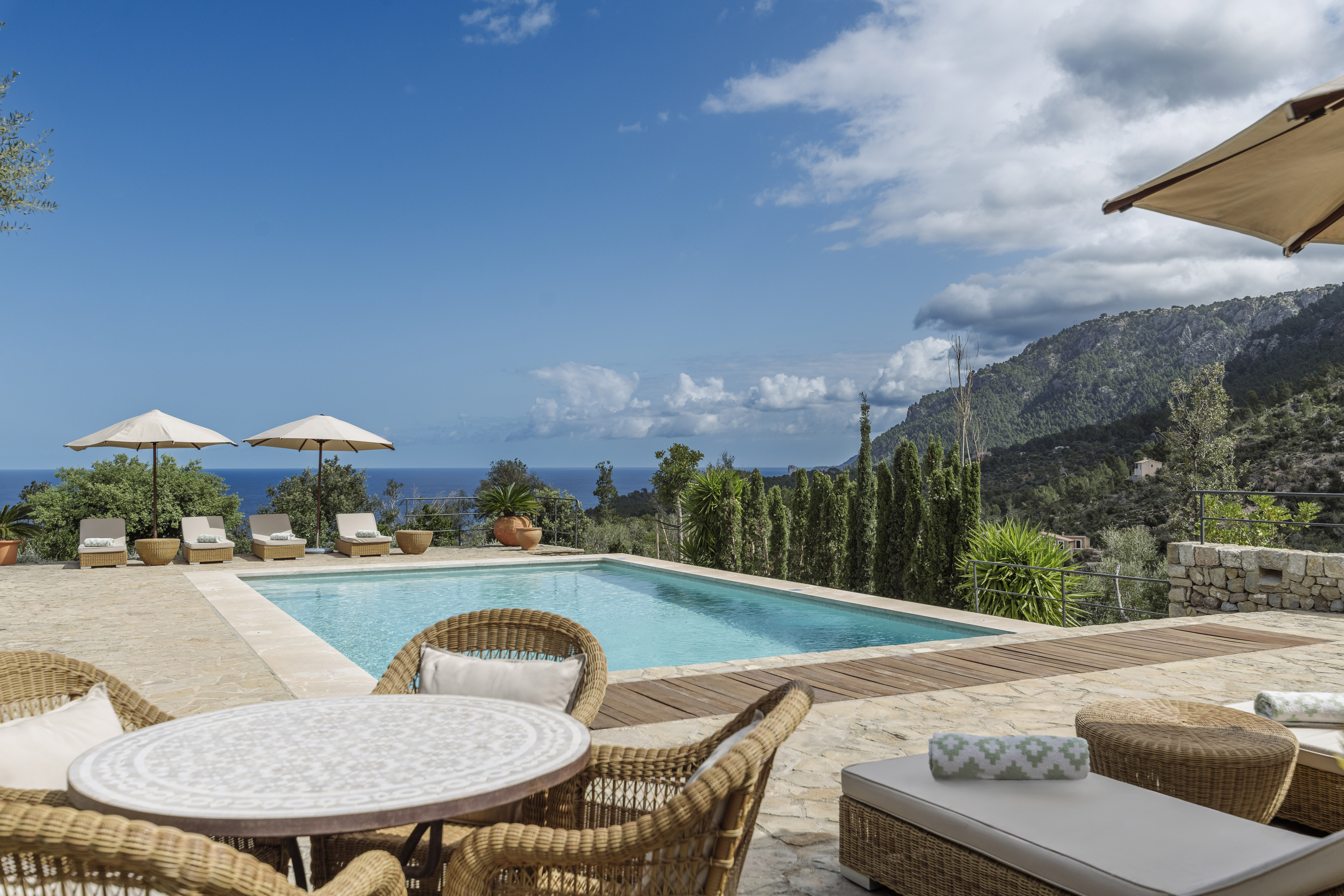 Mallorca ruft – und Son Bunyola antwortet. Das edle Anwesen, eingefasst von der beeindruckenden Kulisse des Tramuntana-Gebirges und der Mittelmeer-Küste, bietet mit seinen historischen Gemäuern und Villen eine Oase der Ruhe. Dank stets kühlender Meeresbrise und großzügigen Pools lässt sich hier selbst der heißeste Sommertag genießen.