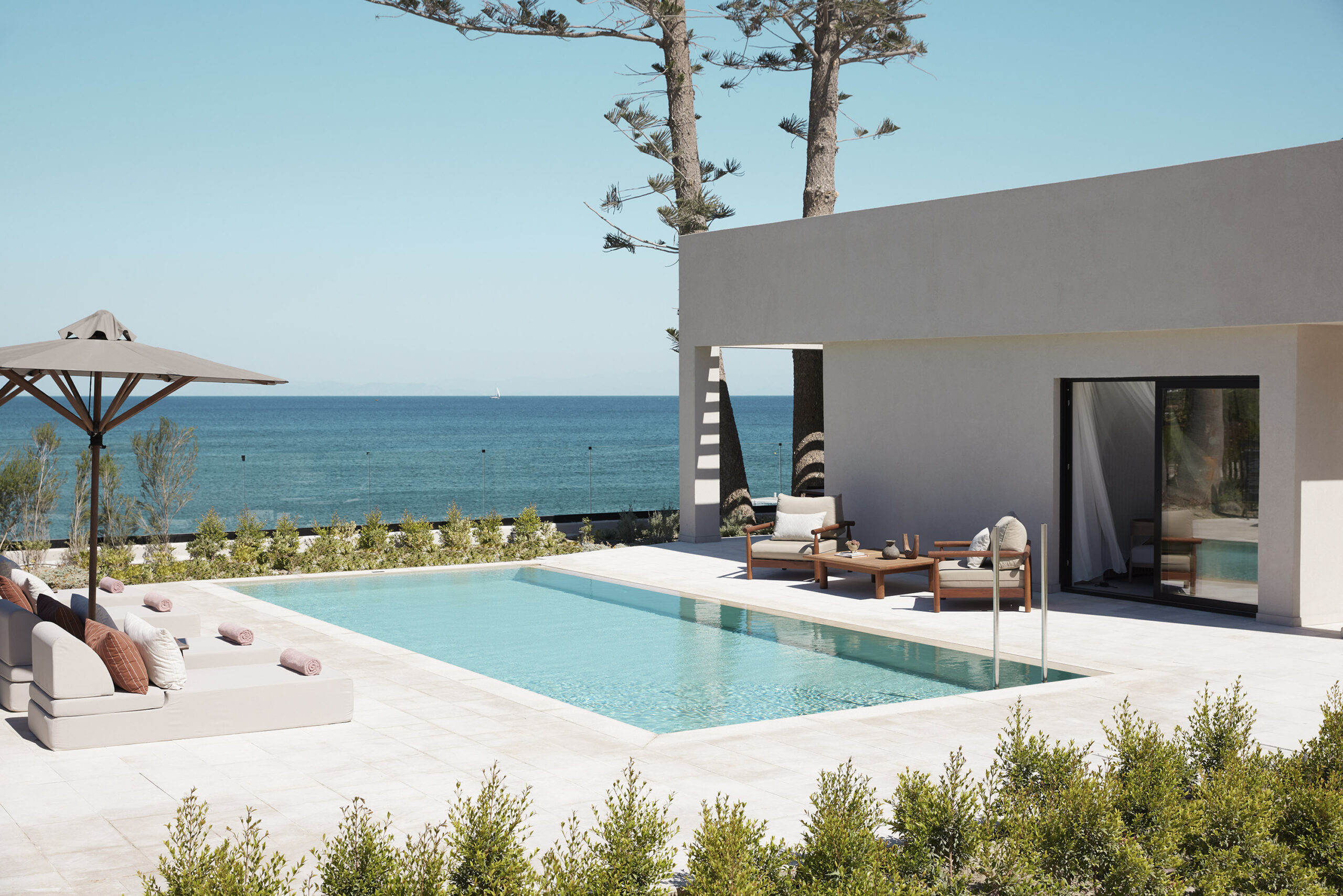 Stylisch, voll im Trend und für jeden etwas dabei – die Ella Resorts sind eine griechische Hotelgruppe, in der sich alles um Leichtigkeit und den Fluss der Dinge dreht. Zur noch jungen Gruppe gehören derzeit vier Resorts – alle direkt am Strand. Und sie machen kein Geheimnis daraus, für wen sie gedacht sind: Familien hier, Erwachsene dort. Auf Rhodos bieten die Ella Resorts gleich zwei Adressen: Helea für Familien sowie Elissa, das sich gezielt an erwachsene Gäste richtet. Seit Mai 2025 ergänzt das Álkyna auf Korfu die Ella-Familie. Das Adults-Only-Resort (ab 16 Jahren) liegt an der Westküste der Insel in der Bucht von Agios Gordios mit direktem Zugang zum Meer. Am 27. März folgt die nächste Eröffnung: Mit Rocrita kommt Ella erstmals nach Kreta. Das neue Resort, gelegen an der ruhigen Ostküste der Insel, verfügt über ein Roée Wellness & Spa Center. Neben dem Design, der Architektur und der Kulinarik bieten auch die „Ella Festivals“ viele thematische Aufhänger, die Einblicke in Kultur und Geschichte der jeweiligen Destination ermöglichen – etwa durch Weinverkostungen, Kunstworkshops oder Ausflüge ins Umland.