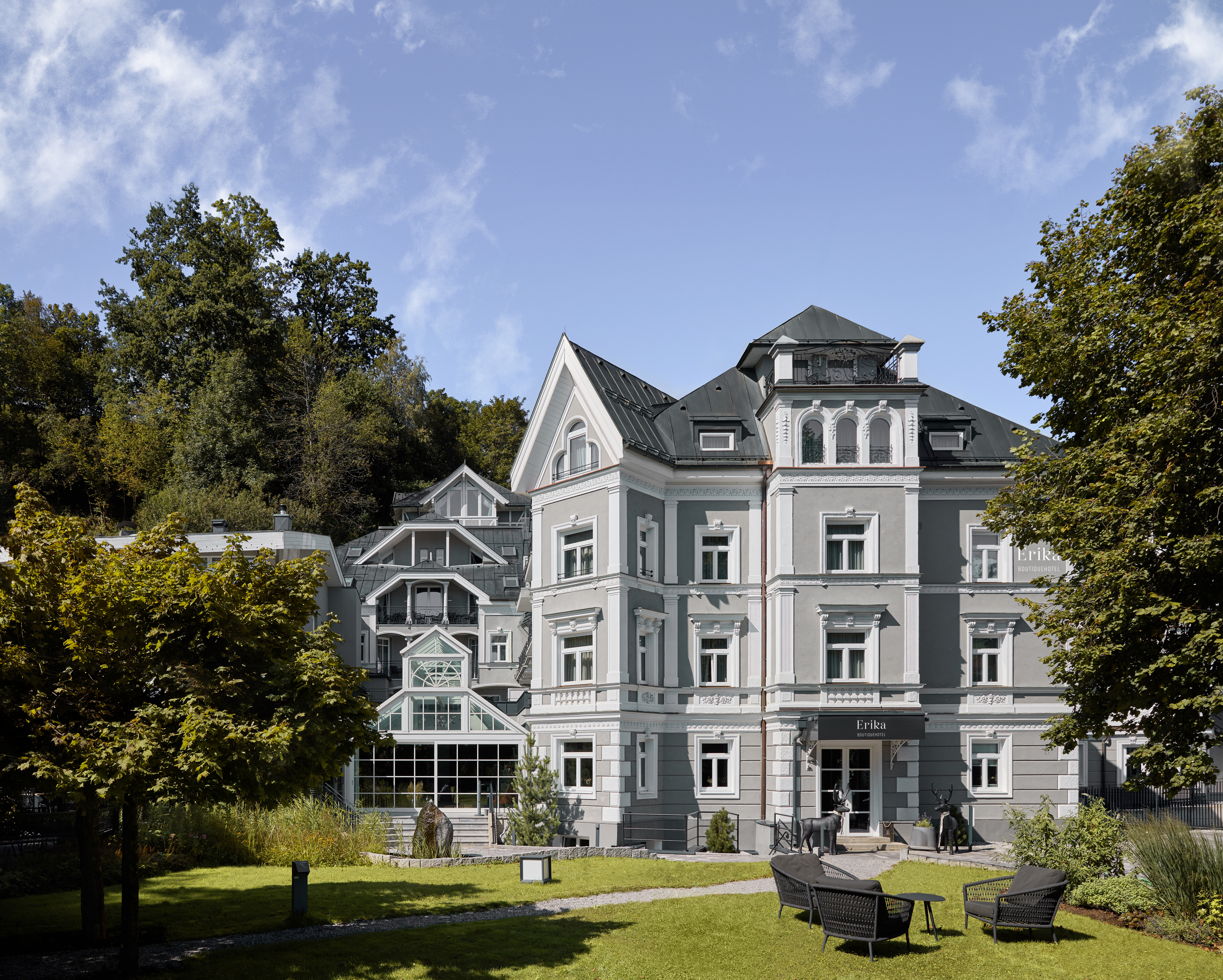 Ein Gründerzeit Juwel im Herzen von Kitzbühel – das ist das Erika Boutiquehotel. Fußläufig vom Kirchenhügel, der Hornbahn, der pittoresken Altstadt und mit Blick auf den berühmten Hahnenkamm vereint das Hotel alles, was Kitzbühel zwischen Natur, Genuss und Tiroler Tradition zu bieten hat. 1897 erbaut als Gartenhotel für Sommerfrischler, die dank der Eisenbahnanbindung Kitzbühel für sich entdeckten, zählt es heute zu den traditionsreichsten Hotels des Ortes und ist der markanten Gründerzeit-Fassade treu geblieben. Außen historisch und innen modernes Design: 55 neu gestaltete Zimmer machen dem Titel Boutiquehotel alle Ehre. In elegantem Dunkelgrün, Aubergine und Grau gehalten ist jedes der individuell geschnittenen Zimmer für sich ein kleines Design-Highlight. Ein absoluter Lieblingsplatz ist die großzügige Terrasse inmitten des blühenden Gartens umgeben von der imposanten Bergwelt Tirols. Der Garten spielt diese Sommersaison eine besondere Rolle, denn hier befindet sich ab Mitte Juni Erika’s Garden Club, der den coolen Vibe bekannter Beach Clubs ins Erika Boutiquehotel Kitzbühel holt. In der grünen Gartenoase mit Liegestühlen und Retro-Sonnenschirmen unterhält ein DJ die Gäste und es werden Snacks und gekühlte Getränke gereicht.