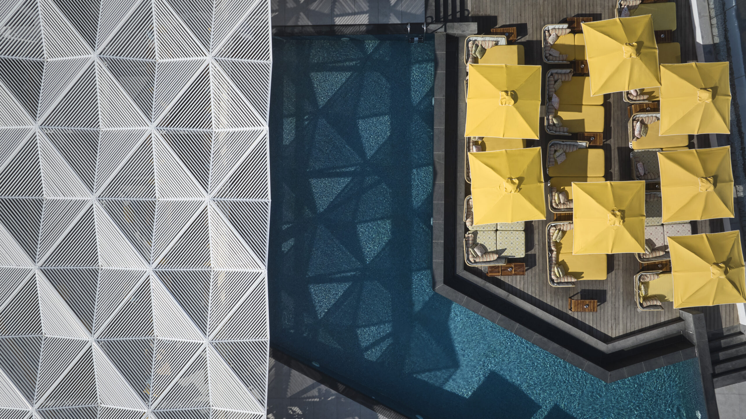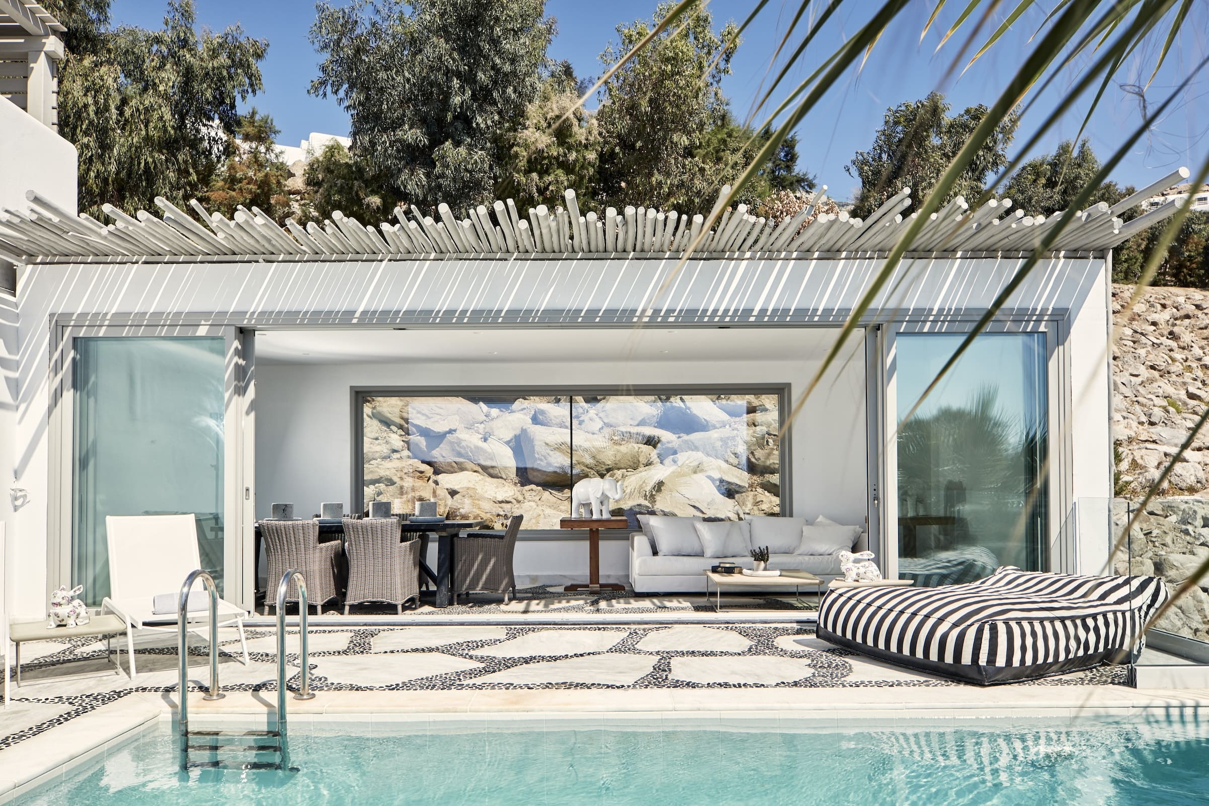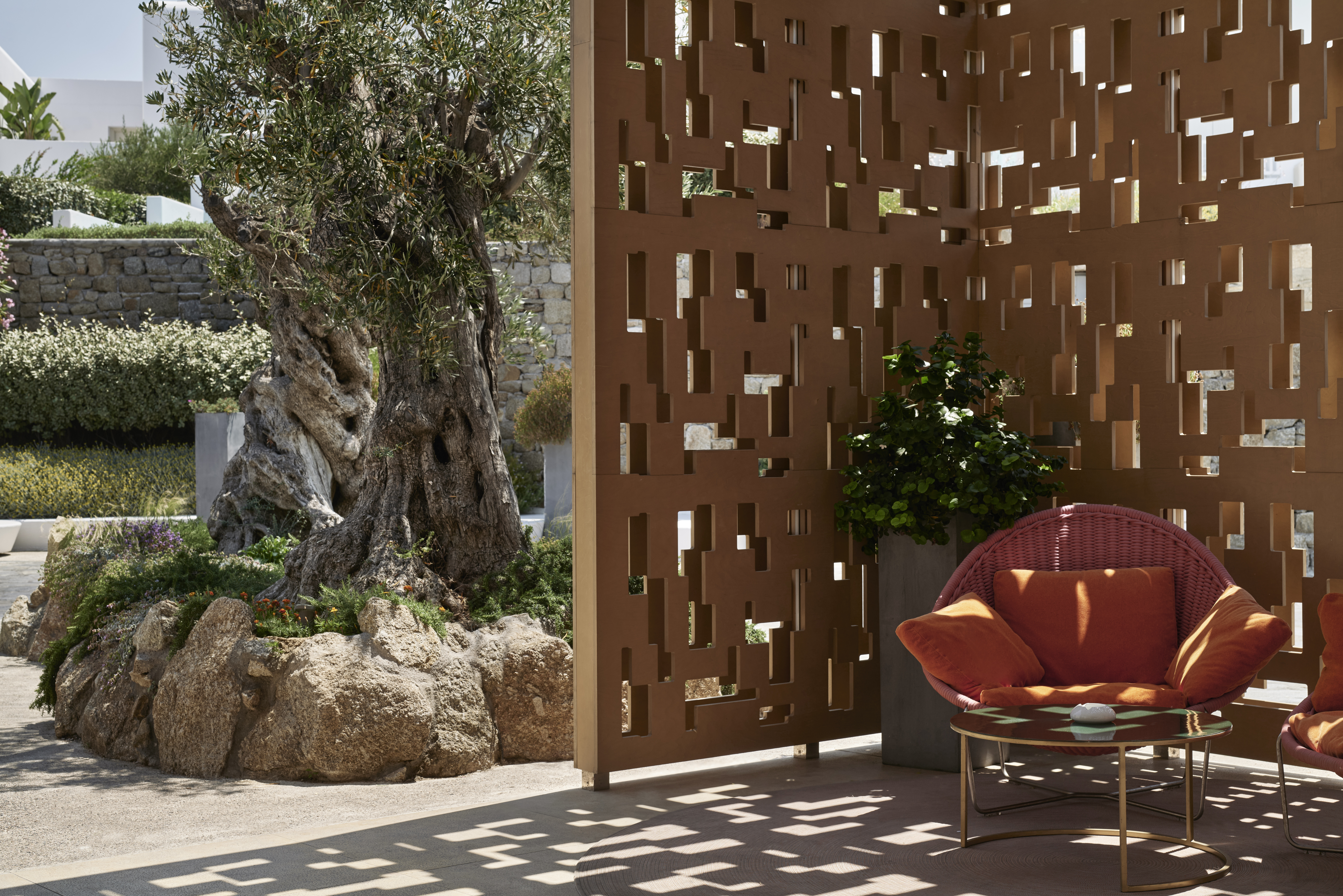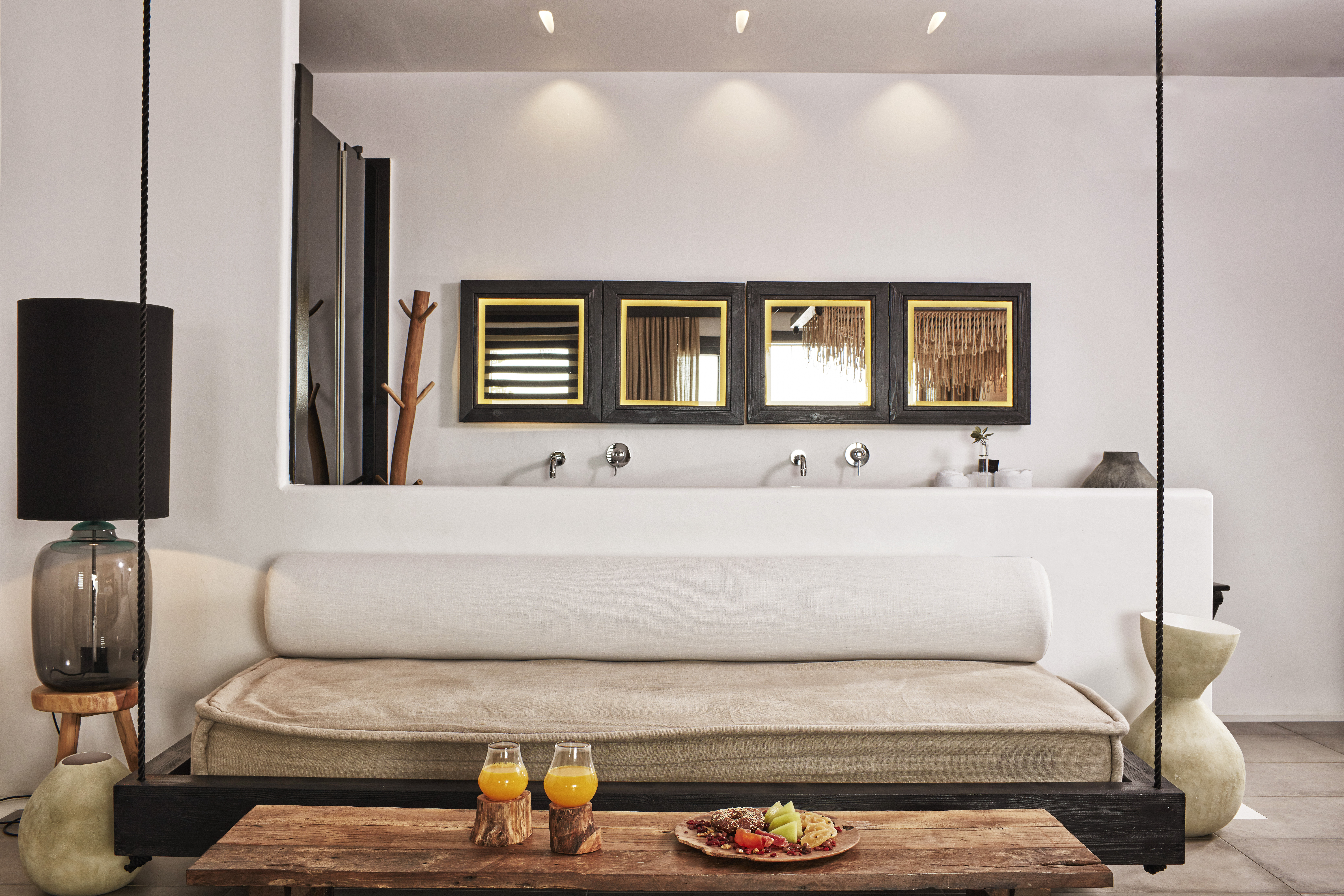 Beides Grundlage für die Arbeit des libanesischen Architekten Galal Mahmoud, der eine Hommage an die Insel und ihr lokales Erbe geschaffen hat. Das Myconian DEOS ist mehr als ein Hotel. Auf einem Hügel hoch über dem Meer gelegen ist es eine Reminiszenz an die Kultur der Kykladen.