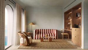 Das einzigartige Hotel präsentiert sich in drei Designsprachen: Delos mit 39 Zimmern verkörpert die Eleganz der französischen Riviera der 1960er Jahre – glamourös, aber nie aufdringlich. Soukana mit 49 Zimmern lädt insbesondere Familien und Wellnessliebhaber ein. Die fünf zweistöckigen Madrague-Häuser mit privaten Gärten in Hafennähe bieten authentischen provenzalischen Charme für Familien oder Freundesgruppen, die ihr Paradies nicht teilen möchten. Eine Kunstgalerie, drei Kunsthandwerksateliers und ein Concept Store beflügen die Kreativität und würdigen das kulturelle Erbe von Paul Ricard, während ein eigener Kinderclub spannende Aktivitäten für junge Gäste und Familien bietet. „Das Ziel ist, Paul Ricards Traum von einer Insel neu zu interpretieren und einen Ort zu schaffen, der seinen zukunftsorientierten Geist der Kreativität, des Teilens und der Offenheit widerspiegelt – Werte, die wir uns zu eigen machen”, so Arnaud Zannier.