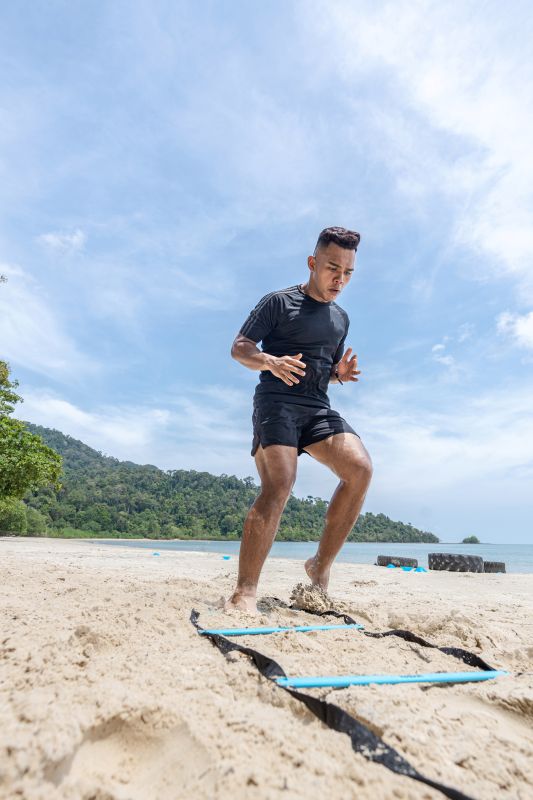 Einen besonderen Reiz bietet auch das Beach-Bootcamp direkt am Strand mit Personal Trainer Muhammad Danish. Mit Sand unter den Füßen und Sonne auf der Haut fordern die abwechslungsreichen Übungen mit Reifen und Gewichten Kraft und Ausdauer gleichermaßen. Während der ganze Körper sportlich gefordert wird, entspannen mental der weite Blick auf die Datai-Bucht und die sanften Geräusche von Meer und Regenwald und machen das Training so auch für die Seele zu einem wahren Erlebnis.