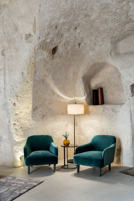 Matera liegt in der süditalienischen Region Basilikata, ein städtisches Juwel, das von der UNESCO zum Weltkulturerbe erklärt wurde. Die Häuser aus weißem Stein, die sich an die steilen Felshänge schmiegen, sind durch ein spektakuläres Gewirr von Gassen und Treppen miteinander verbunden. Berühmt ist die Stadt für ihre Sassi, in den Fels gehauene Höhlenwohnungen, deren Geschichte bis in die Altsteinzeit zurückreicht. Einige dieser bewundernswert restaurierten Sassi beherbergen heute das Relais & Châteaux Vetera Matera. Die 23 Zimmer verfügen über große Fenster und Terrassen mit Blick auf eine Landschaft, die weltweit als Kulisse für unzählige Filmproduktionen bekannt ist. In den gewölbten Innenräumen befinden sich ein Gourmet-Restaurant, das Spezialitäten der Region Basilikata serviert sowie das Spa, das mit seinen in den Fels gehauenen Entspannungsbecken zur Regeneration einlädt. Die moderne Einrichtung des Vetera Matera strahlt schlichte Eleganz aus und stellt den rauen Naturstein in den Mittelpunkt. Das bewahrt sowohl die Atmosphäre als auch die lange Geschichte dieses außergewöhnlichen Ortes.