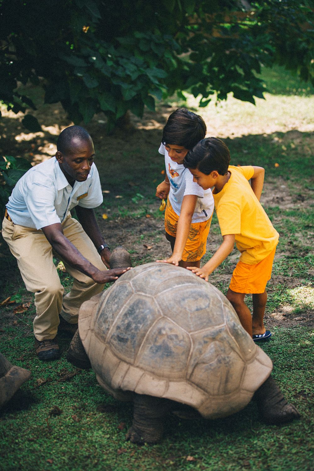 Sich wie ein echter Abenteurer fühlen und die tropische Insel erkunden: Bei einem Ausflug zum Tortoise Sanctuary, auch Schildkröten-Kindergarten genannt, erleben die jungen Entdecker die heimischen Aldabra Schildkröten panzer-nah: Streicheln, einem ausgebildeten Ranger Fragen stellen und bei der Fütterung live dabei sei – das alles macht das Raffles Seychelles möglich und die ältesten Bewohner der Insel (die Schildkröten können über 100 Jahre alt werden) freuen sich über den jungen Besuch. Kinder lernen dabei viel über die Lebensweise der sanften Riesen und bekommen einen Einblick in die Artenvielfalt der Seychellen. Zudem bietet das Luxusresort für alle jungen Abenteurer kostenlos geführte Schnorchel-, Kajak und Paddle-Boarding-Touren an. So werden auch die Geheimnisse der seychellischen Meereswelt erkundet.