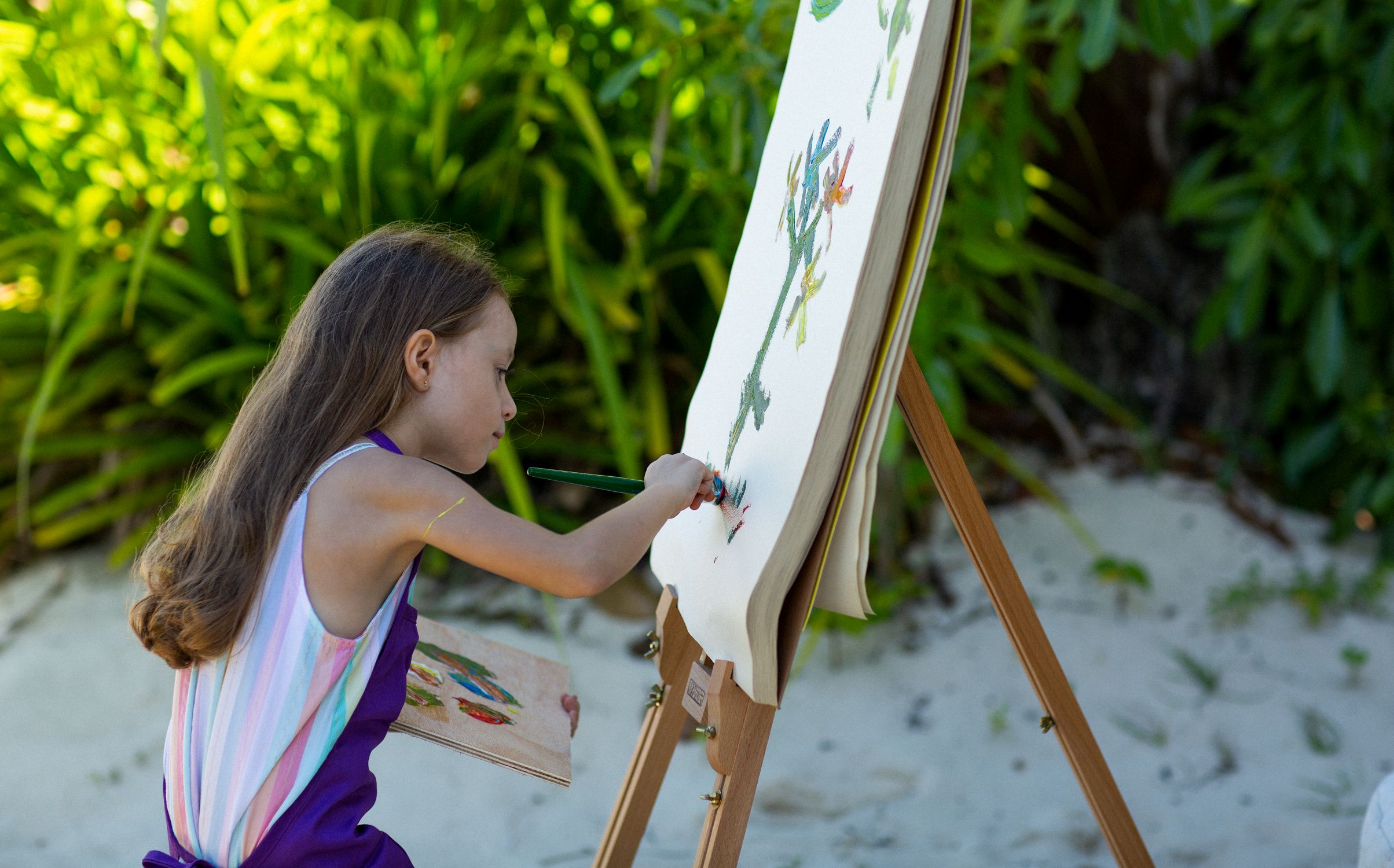 Vom Tropenabenteuer geht es direkt weiter ins Künstleratelier: Für junge Gäste zwischen vier und 12 Jahren, die lieber ein kreatives Abenteuer suchen, organisiert der Kids Club unzählige Aktivitäten mit K wie Kokosnussmalerei, Kinderyoga, Kochkurse und Kinoabende. Die Villen sind zudem mit Staffeleien und Skizzenblöcken ausgestattet. So werden angehende Künstler ermutigt, das Entdeckte direkt malerisch festzuhalten. Für Teenager gibt es den Teens Club, aber Achtung! Zutritt ist erst ab 13 Jahren erlaubt. Dort werden spannende Matches auf der Sony PlayStation 5 oder der Nintendo Switch ausgetragen und für alle zukünftigen Popstars gibt es zudem Karaoke. Wer sich gerne auspowert ist bei den unzähligen Outdoor-Spiele, die der Teens Club organisiert, genau richtig.