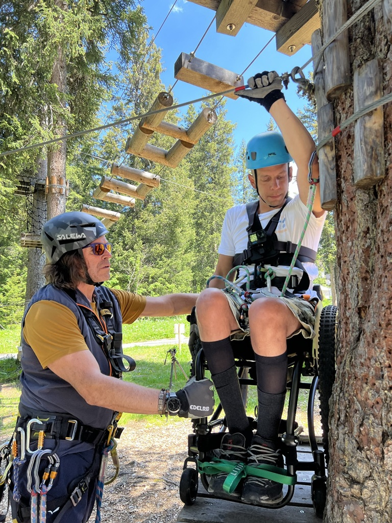 Auch den Seilpark Arosas können Menschen mit leichter Beeinträchtigung und entsprechender Begleitung nutzen. Zukünftig ist ein spezieller Parcours geplant, der auf die Bedürfnisse von Menschen mit Mobilitätseinschränkungen abgestimmt ist – ein weiterer Schritt in Richtung einer inklusiven Zukunft für Arosa.