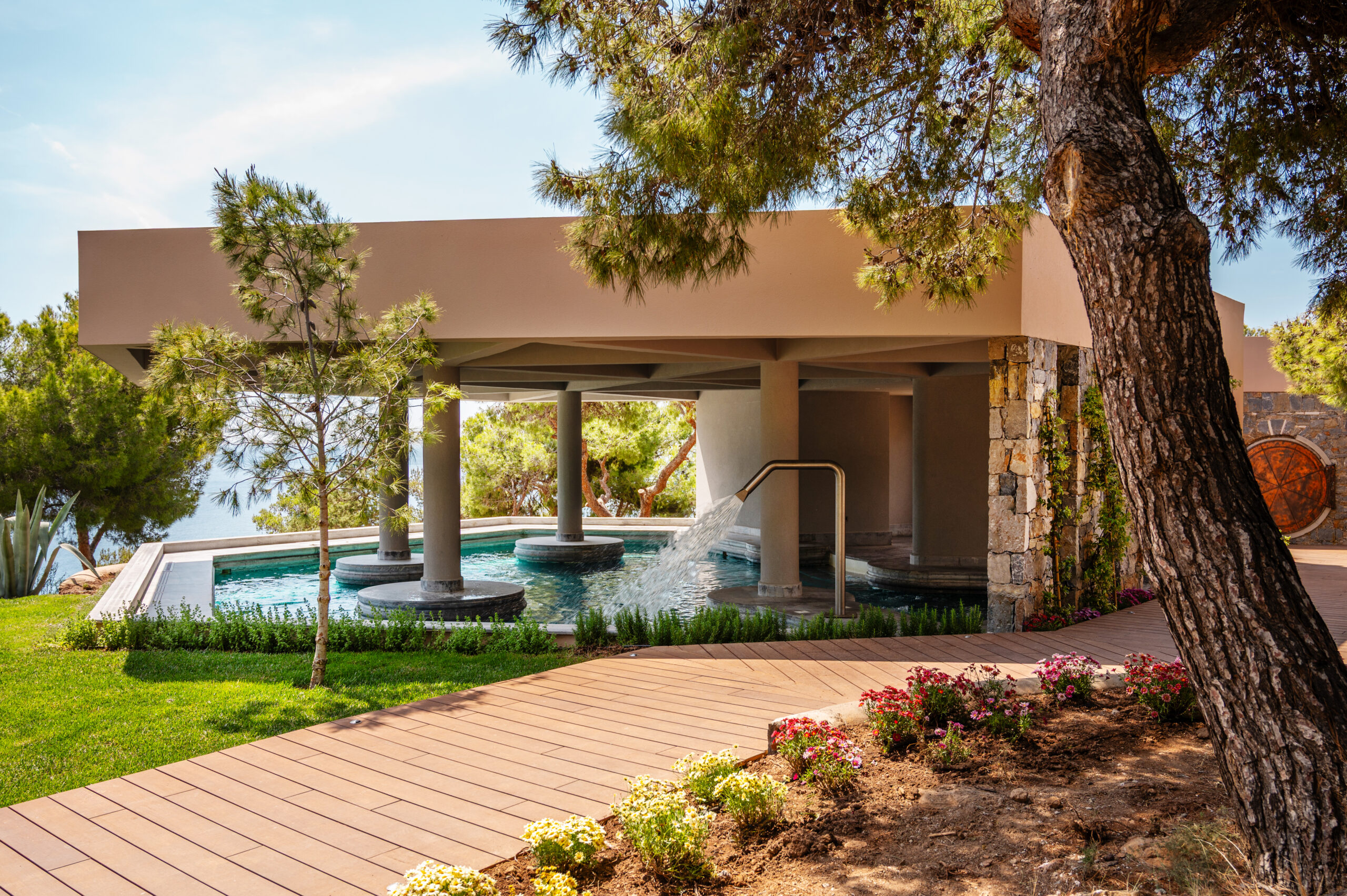 Das Resort selbst wird zur Bühne dieses neuen Lebensgefühls: Vom Pinienwald über den Spa bis hin zum Meer entfaltet sich „Elevations of Wellness“ als immersive Erfahrung. Bei morgendlicher Meditation am Wasser mit Blick auf die Weihestätte des Meeresgottes, Schwimm-Meditation in kristallklarem Meerwasser oder Erdungsritualen unter dem Dach des Pinienwalds – jede Aktivität stellt eine bewusste Verbindung zur heilsamen Kraft der Natur dar und lädt zu innerer Einkehr ein. Vollmond-Sessions am Strand und kontemplative Wanderungen auf historischen Pfaden vertiefen das spirituelle Erleben. Auch kulinarisch steht das Wohlbefinden im Mittelpunkt: Die Healing Cuisine folgt dem Prinzip „Food as Medicine“ – mit saisonalem Gemüse, Wildkräutern und hochphenolischem Olivenöl aus Vlachonis‘ eigener Linie Saint Supply, in die auch Beyoncé investiert.