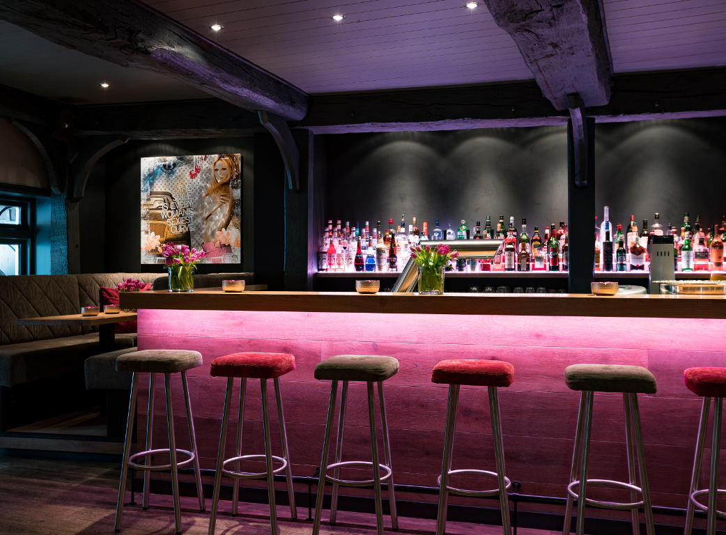 Einen Cocktail trinken mit Audrey Hepburn, Steve McQueen, Brigitte Bardot, Marilyn Monroe oder Sir Sean Connery: In der Miles Bar im Landhaus Stricker kommt man diesen Ikonen erstaunlich nah – nicht persönlich, aber dafür in Form von Pop-Art-Werken des renommierten deutschen Künstlers Devin Miles, nach dem die Bar benannt ist. Seine großformatigen Arbeiten setzen die Filmgrößen der 50er und 60er Jahre gekonnt in Szene und schaffen eine Atmosphäre zwischen Glamour, Nostalgie und Lässigkeit. Das Interior ist passend dazu stilvoll-dunkel mit samtbezogenen Barhockern, viel Holz und gemütlichen Sitzecken gehalten. Ob zum Aperitif, zum Digestif oder als nächtlicher Tagesausklang, die Miles Bar ist der „Place to be“ im Fünf-Sterne-Superior-Haus von Holger Bodendorf.
