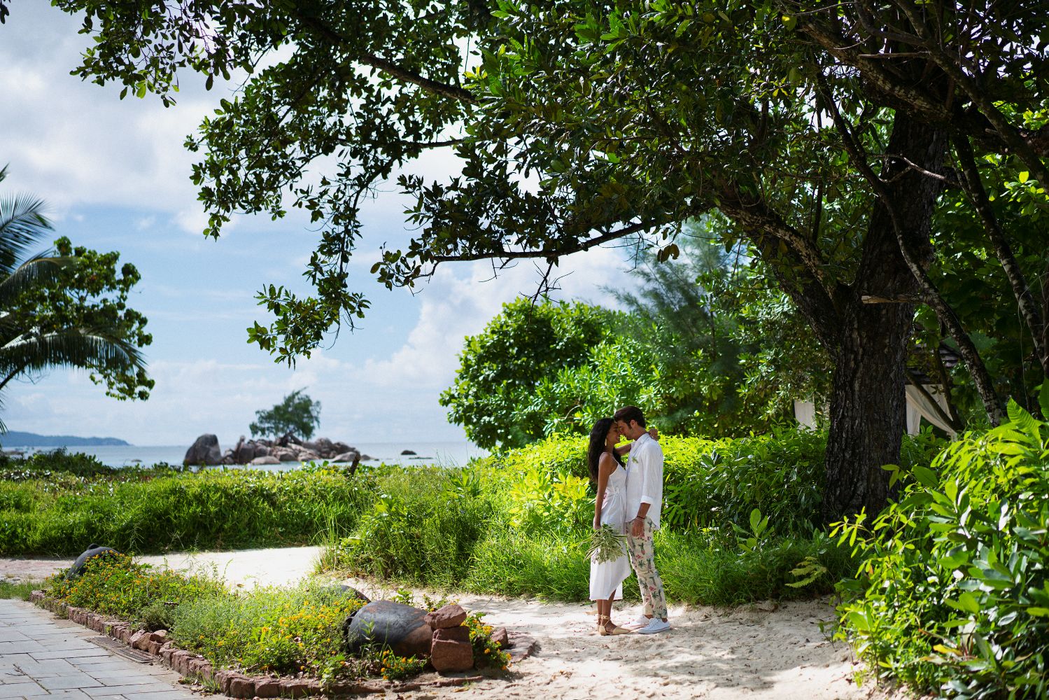 Vanilla-Lou Labiche, Romantik-Concierge des Raffles Seychelles, steht zukünftigen Eheleuten mit Rat und Tat zur Seite und sorgt dafür, dass alle Hochzeitsträume wahr werden. Für die Trauung können Paare zwischen zwei einzigartigen Orten wählen: Am Strand Anse Takamaka begleitet vom sanften Rauschen des Meeres bei Sonnenuntergangsstimmung oder eingebettet in den dichten, smaragdgrünen Dschungel des UNESCO-geschützten Vallée de Mai. Zwischen imposanten Felsen, rauschenden Wasserfällen und den hier wachsenden rund 5.000 Coco de Mer-Palmen geben sich Verliebte das Ja-Wort. Aufgrund der ökologischen Sensibilität dieses Weltnaturerbes ist die Anzahl der Hochzeiten hier bewusst begrenzt und mit etwas Glück wohnen sogar Aldabra-Riesenschildkröten oder der seltene Schwarzpapagei der Hochzeit bei.