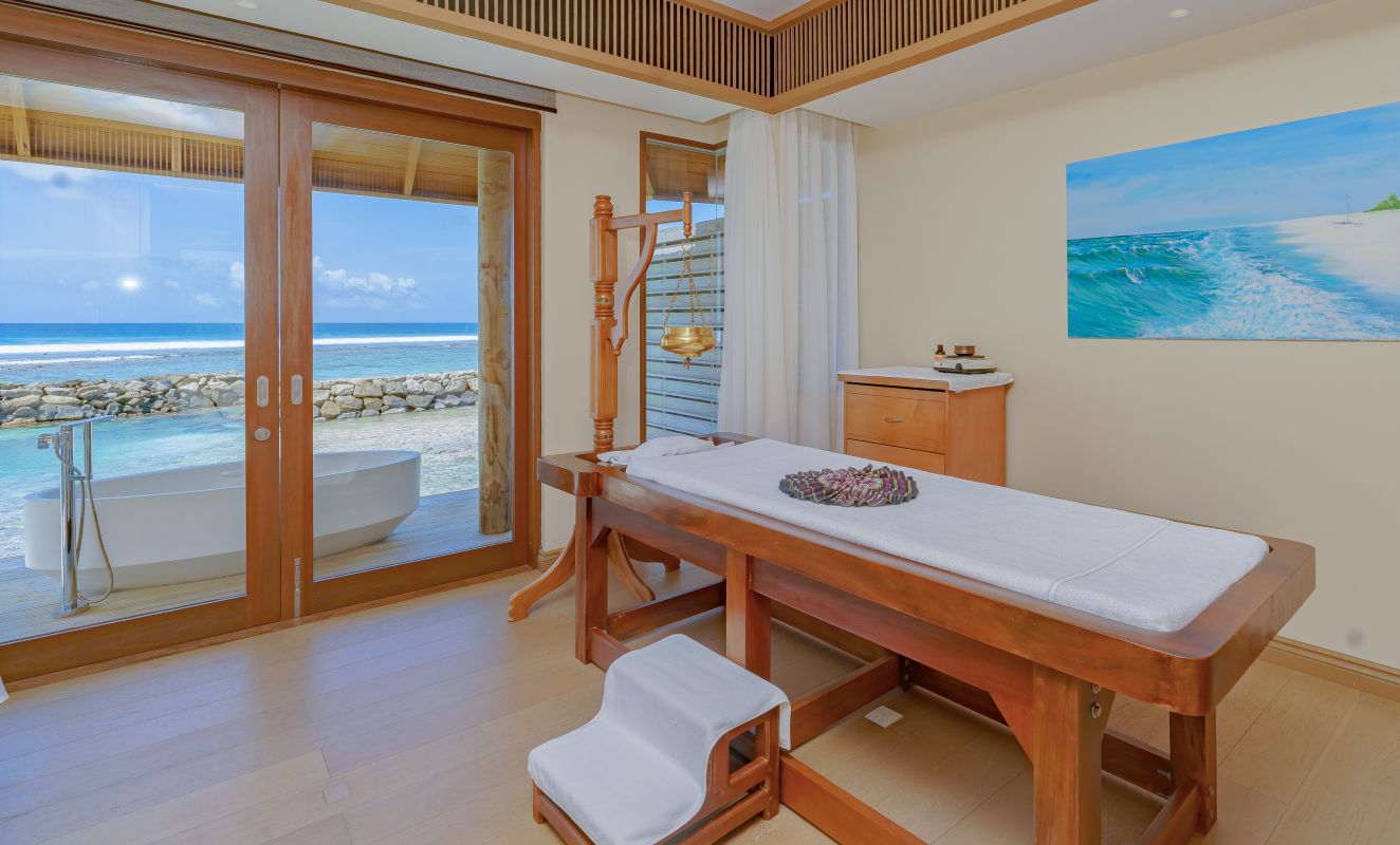 Getreu dem ayurvedischen Motto der Ganzheitlichkeit trägt auch die Umgebung des Kuda Villingili Resort zur Wirkung der Ayurveda-Behandlungen bei. In acht auf einer eigenen Insel gelegenen Überwasser-Villen, nur einen Spaziergang oder eine kurze Fahrradfahrt über den Holzsteg entfernt, erwartet Gäste eine Oase der Ruhe inmitten des Indischen Ozeans. Die Behandlungsräume bietet dabei einen direkten Blick auf das weite Ozeanpanorama und die Surfer in den Wellen des vorgelagerten Surfspots Chickens Break, eine der längsten linksbrechenden Wellen der Malediven, entspannen allein beim Zusehen. Zusätzlich fließt der spirituelle Geist der Insel in die täglichen Yoga- und Meditationssessions ein: ob beim Sunrise-Yoga am Strand, Vinyasa-Flows oder aktivierenden Aqua-Yoga-Einheiten. Da Schönheit bekanntlich von innen kommt, bietet das Kuda Villingili Resort auch eine eigene Spa-Cuisine und kulinarische Detox-Programme an.
