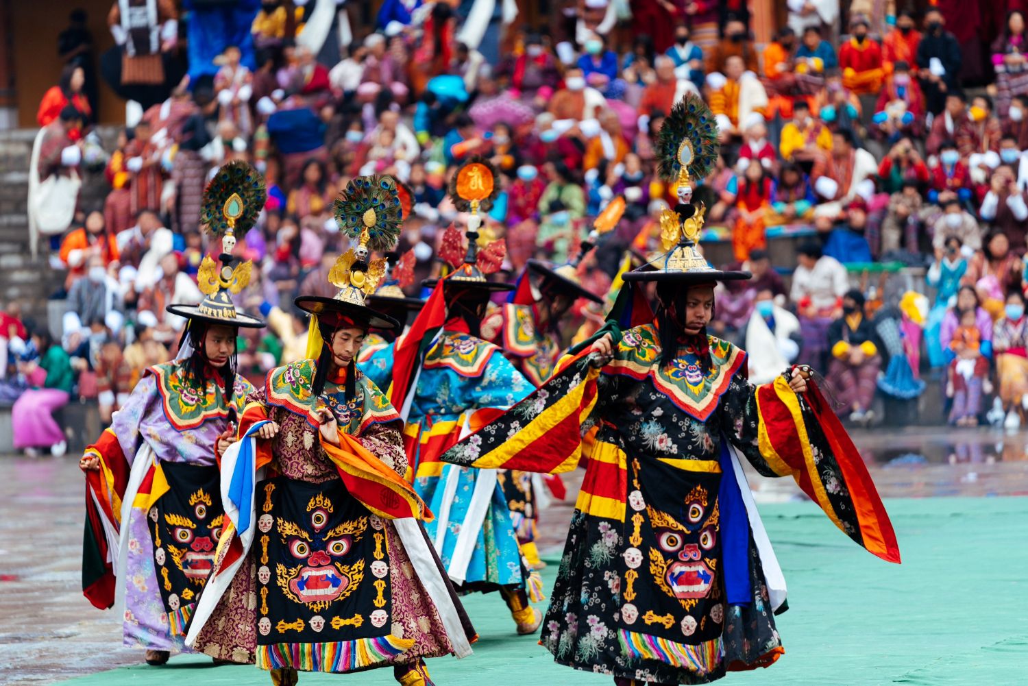 Zu den eindrucksvollsten Festen zählen die großen Tshechus in Paro, Thimphu und Punakha, bei denen spirituelle Zeremonien, Musik und kunstvolle Tänze zu einem faszinierenden Gesamterlebnis verschmelzen. Ein Höhepunkt vieler Festivals ist das feierliche Entrollen eines riesigen religiösen Wandbildes, eines sogenannten Thangkas, das nur einmal im Jahr gezeigt wird.