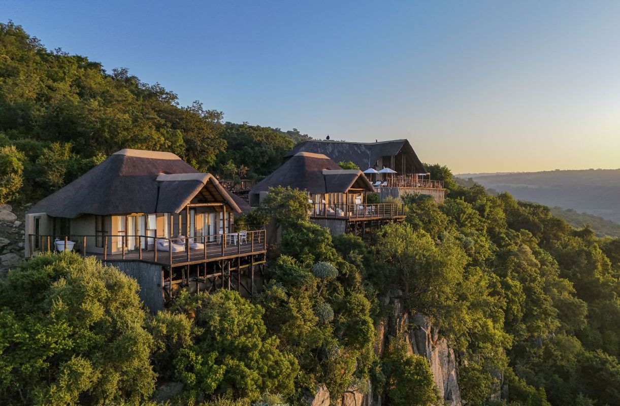Im Herzen des Nambiti Private Reserve in der Zulu-Region, ist die Esiweni Luxury Safari Lodge sowohl ein Aussichtspunkt als auch ein Startpunkt für alle, die die «Big Five» beobachten möchten. Auf einer Klippe am Ende eines Pfades gelegen, von der aus man das Buschland, die Savanne und den Fluss überblickt, wirken die fünf mit Strohdächern versehenen Suiten, die mit lokalem Kunsthandwerk geschmückt sind, wie Kokons, die sich dieser unberührten Natur öffnen. Von morgens bis abends versammelt sich die Tierwelt unter den Panoramaterrassen. Die Anlage ist mittlerweile völlig autark und wird vollständig mit Solarenergie betrieben – eine Initiative, die im Einklang mit dem Engagement von Relais & Châteaux für den Schutz der Artenvielfalt, die Verringerung von Umweltbelastungen und die Erhaltung des lokalen Erbes und der lokalen Gemeinschaften steht.
